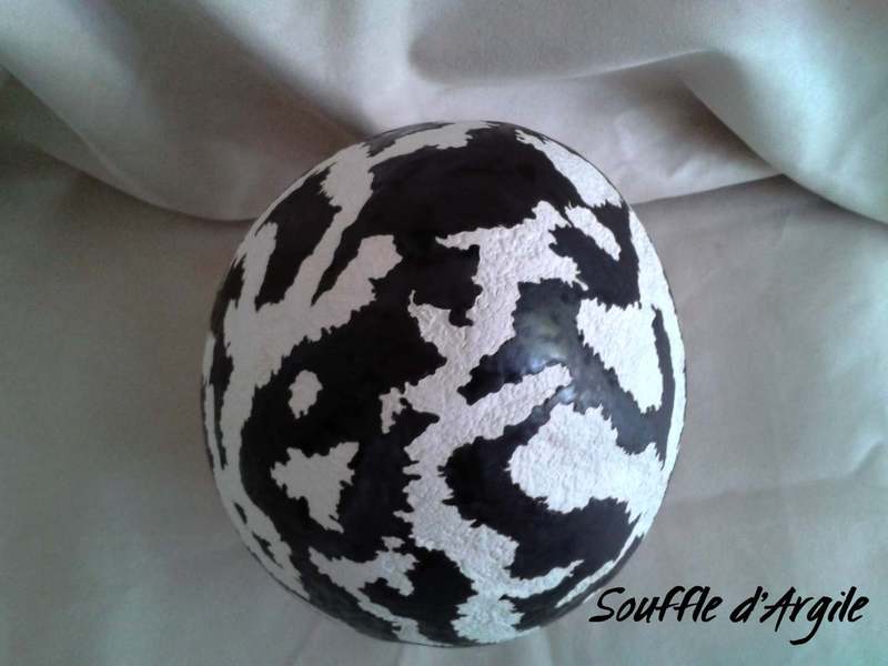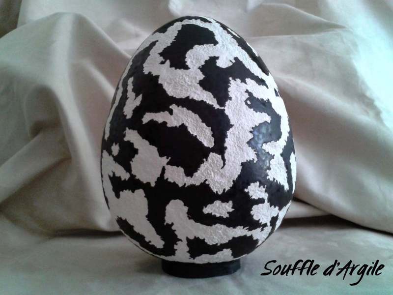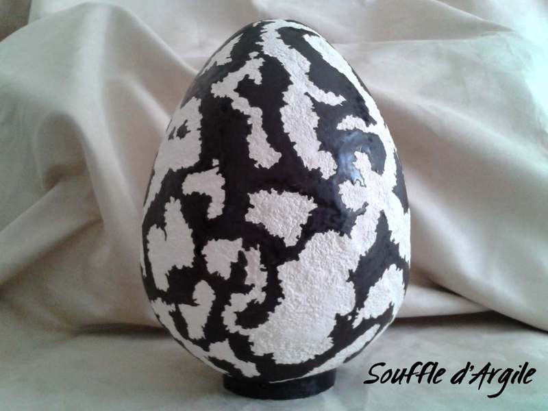Grand oeuf ornemental "reliefs du monde" assorti à la coupe.