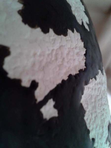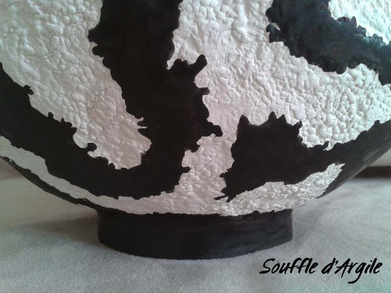 Sont mis en harmonie le noir et le blanc,le rugueux minéral et le poli de l'émail.
